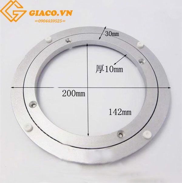 Phụ kiện mâm xoay bàn ăn cỡ 8 đường kính 20cm được làm bằng chất liệu nhôm hợp kim cứng cáp, không gỉ, chịu tải cao. Thiết kế vòng bi chất lượng cao cho mâm xoay chuyển động mượt mà.