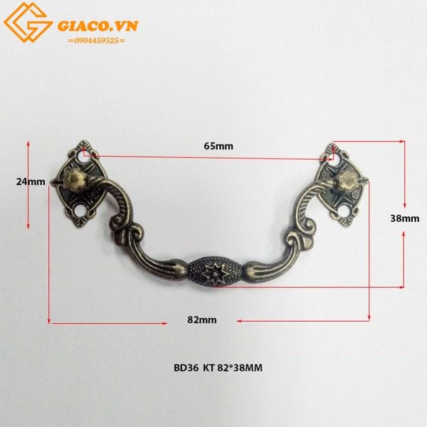Tay kéo chất liệu hợp kim mạ mầu đồng tối, dùng cho các hộp gỗ vừa và nhỏ. Mang phong cách giả cổ tinh tế.